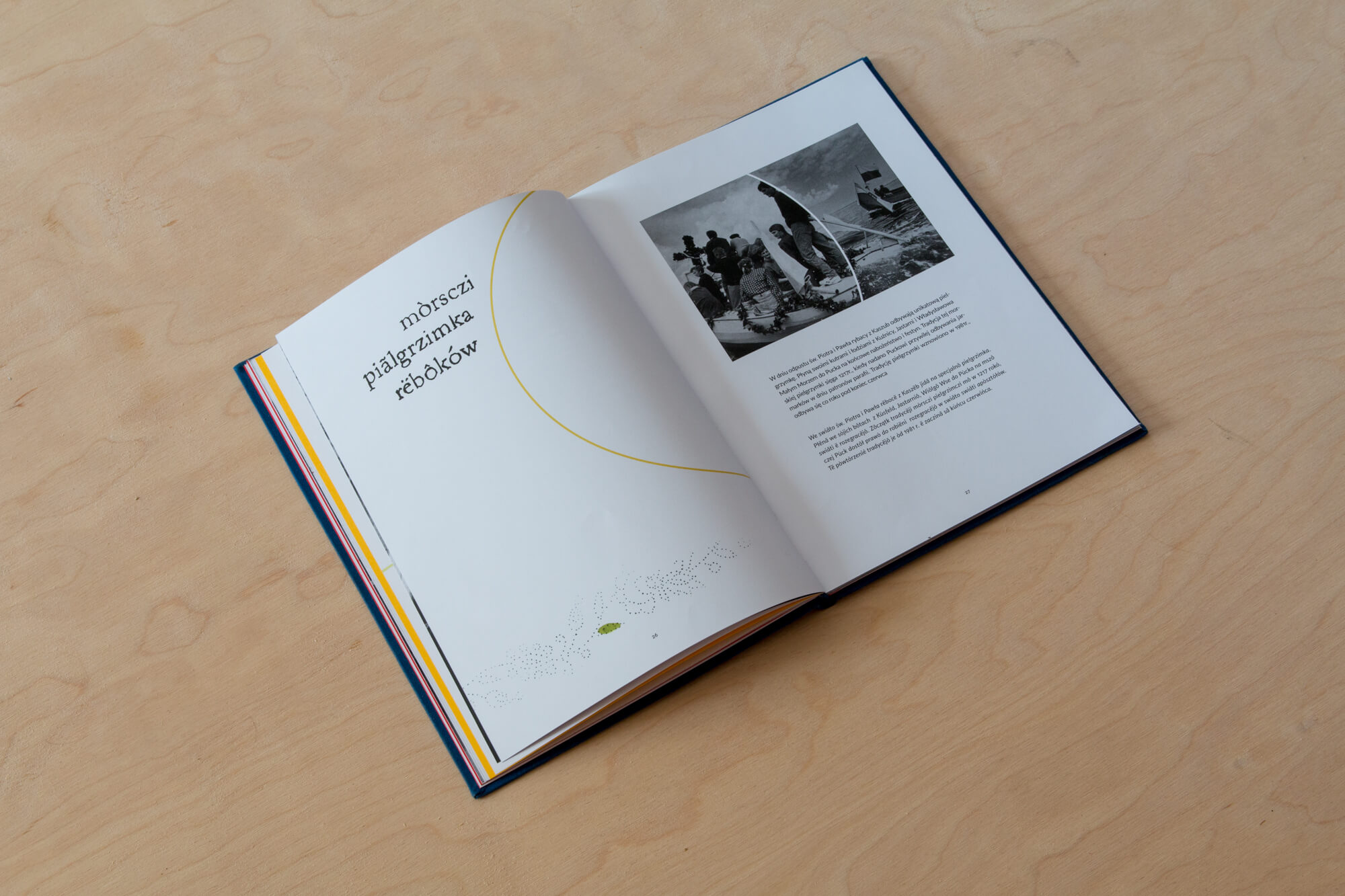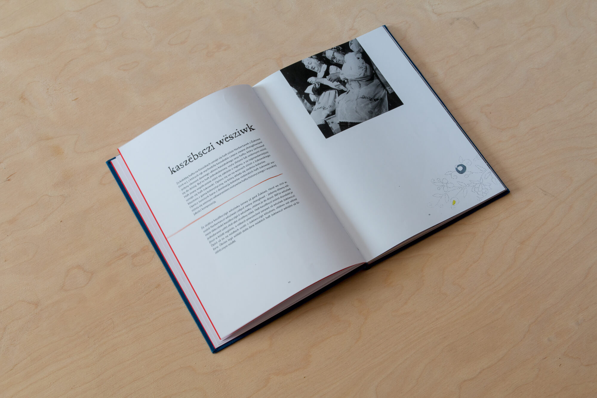 "Kaszebe" to pozycja wydawnicza pozwalająca zapoznać się z kulturą regionu kaszubskiego. Wykorzystałam archiwalne zdjęcia, tradycyjne wzory haftu oraz jego podstawowe 7 kolorów.