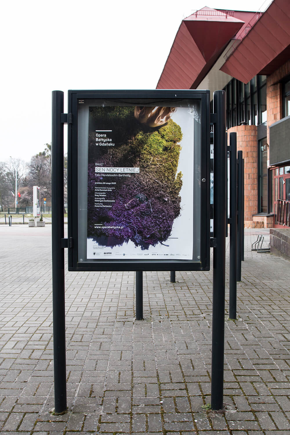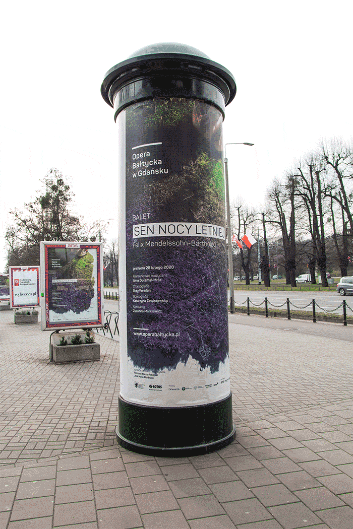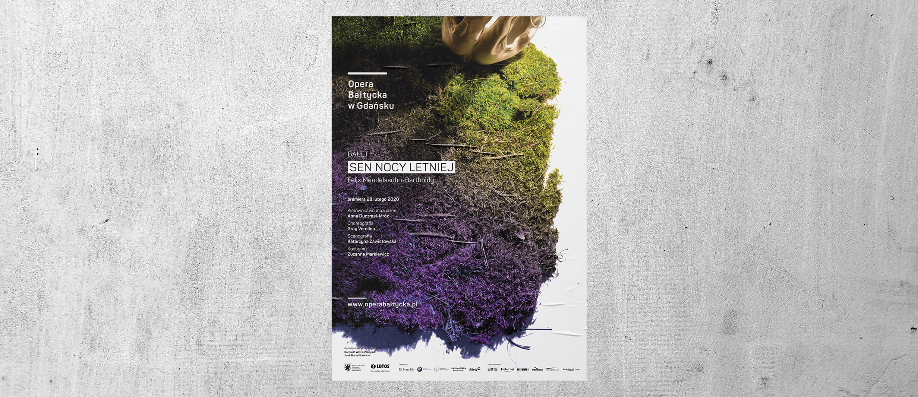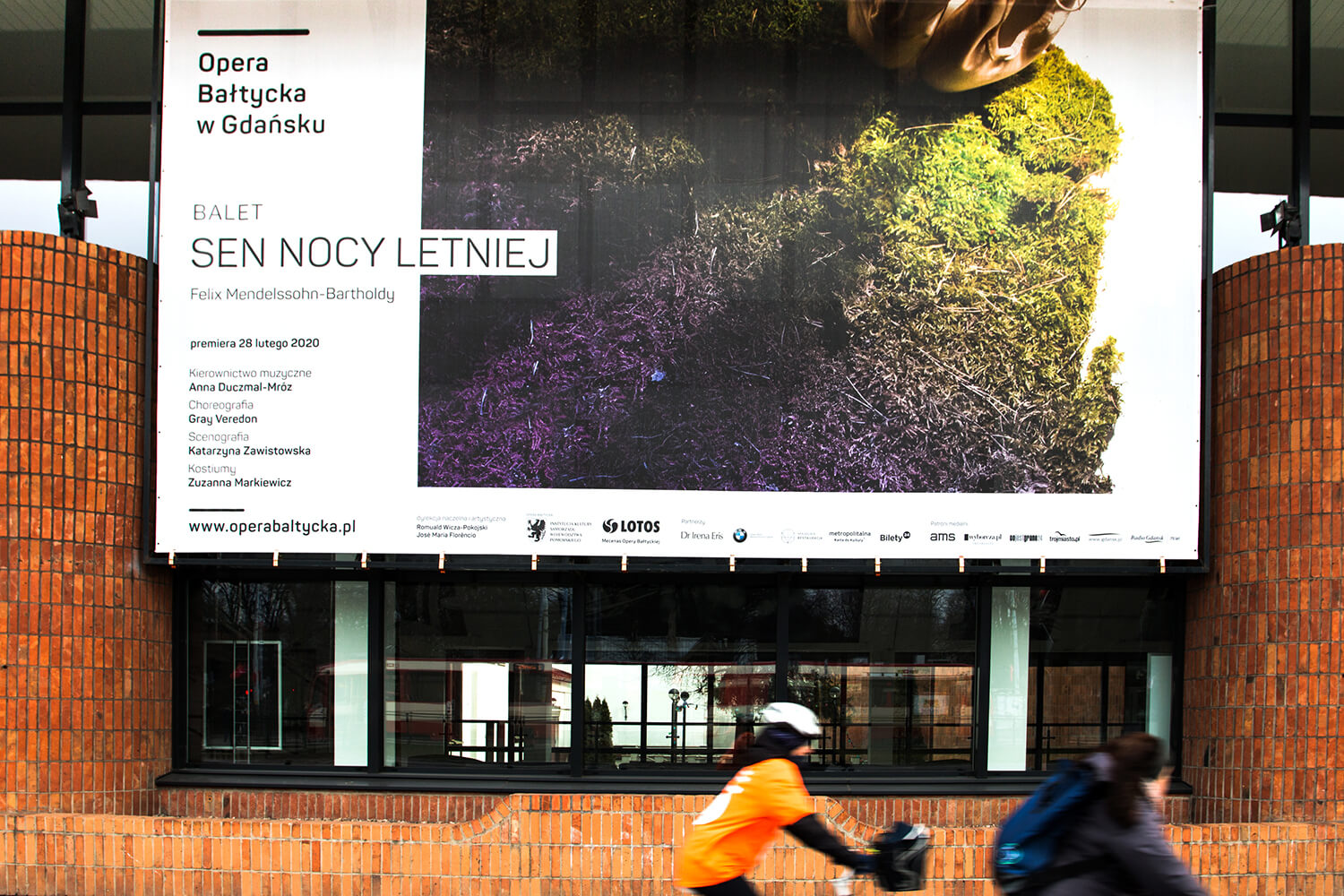Oprawa graficzna premiery baletu "Snu nocy letniej" Opery Bałtyckiej.